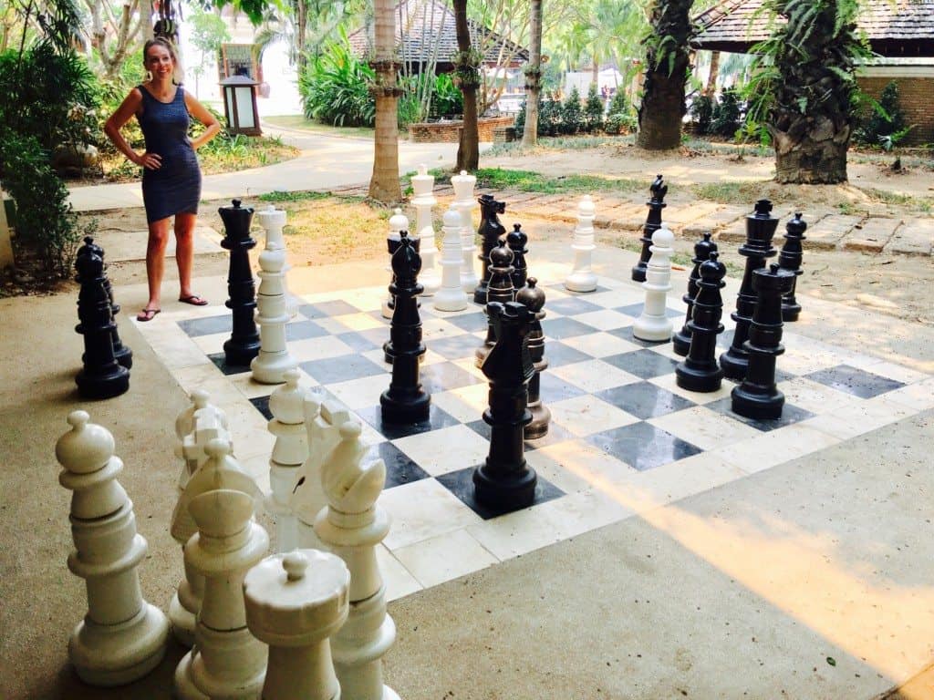 - Giant Chess – Outside by the pool is a giant chess set, so of course, we had to play. I got beat twice and I was a sore loser both times.