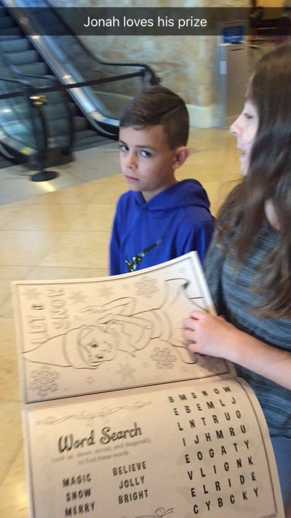 Almost all packages include this scavenger hunt. We did this, and it took about 2.5 hours to find 10 hidden elves. My son was rewarded with a coloring book for finishing. Although we had a lot of fun doing the scavenger hunt, he hated the prize. Not sure what he thought he would win.