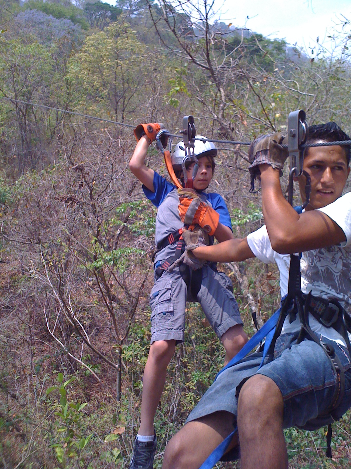 We zipped down 14 different cables. One of the lines was 1 km long. This was the first time zip lining for all of us. Although we were high up, it was not scary. All three kids did great. The younger two went tandem, each time. Our oldest went tandem, but also took a few lines by himself once he felt comfortable.